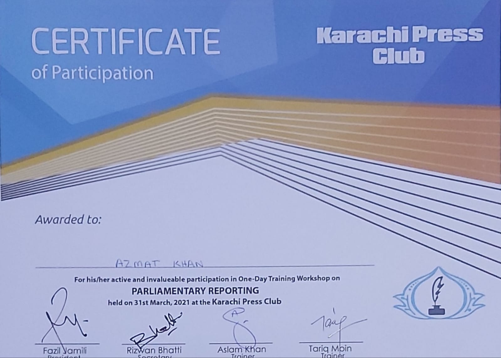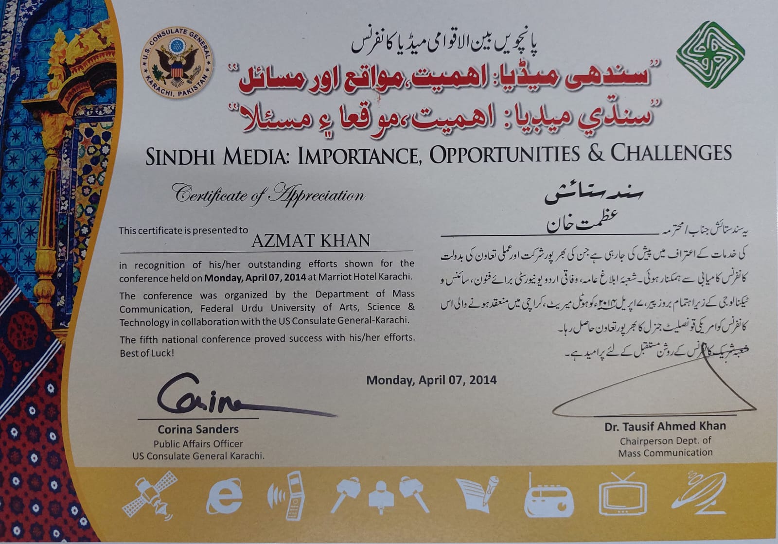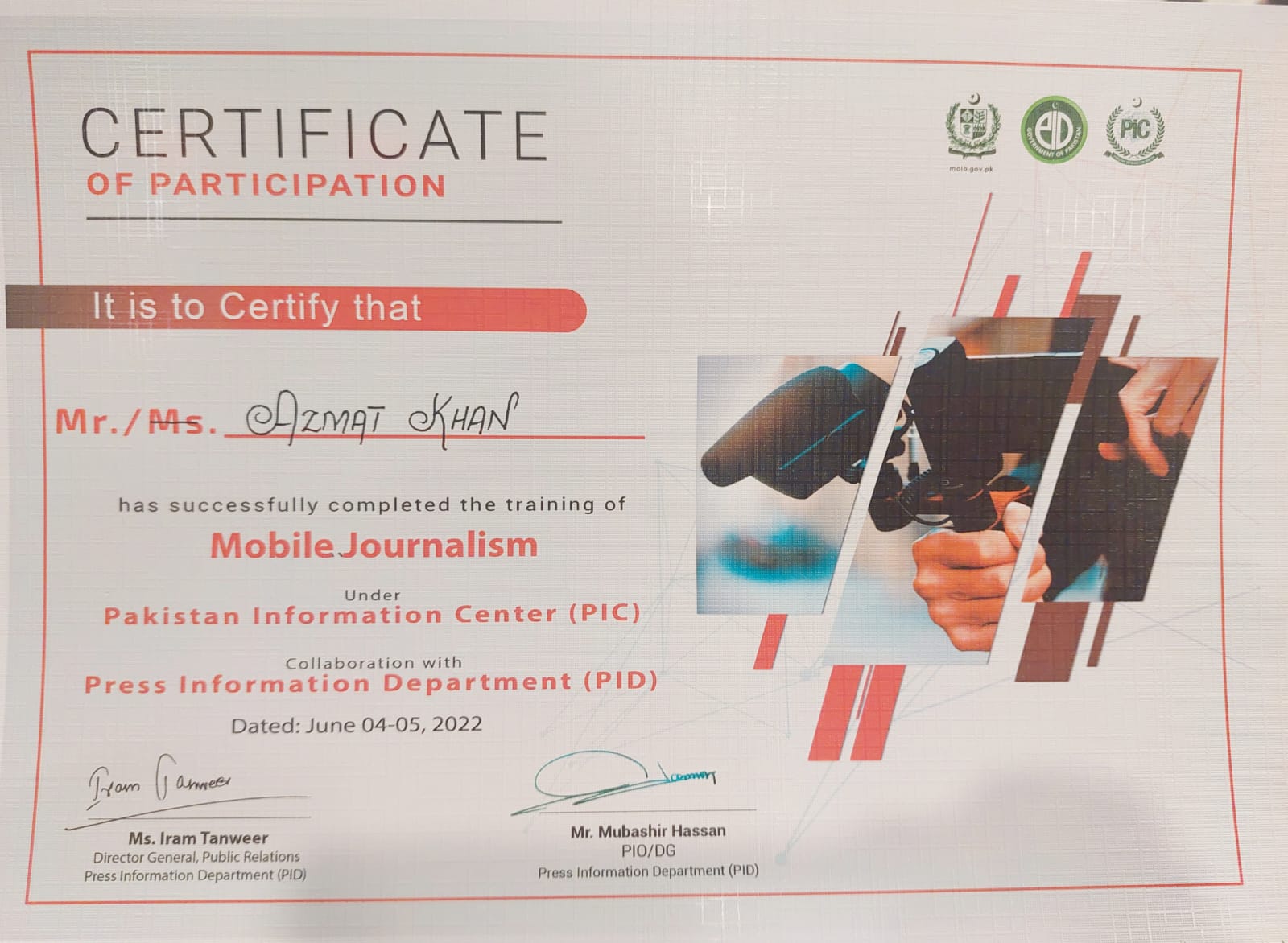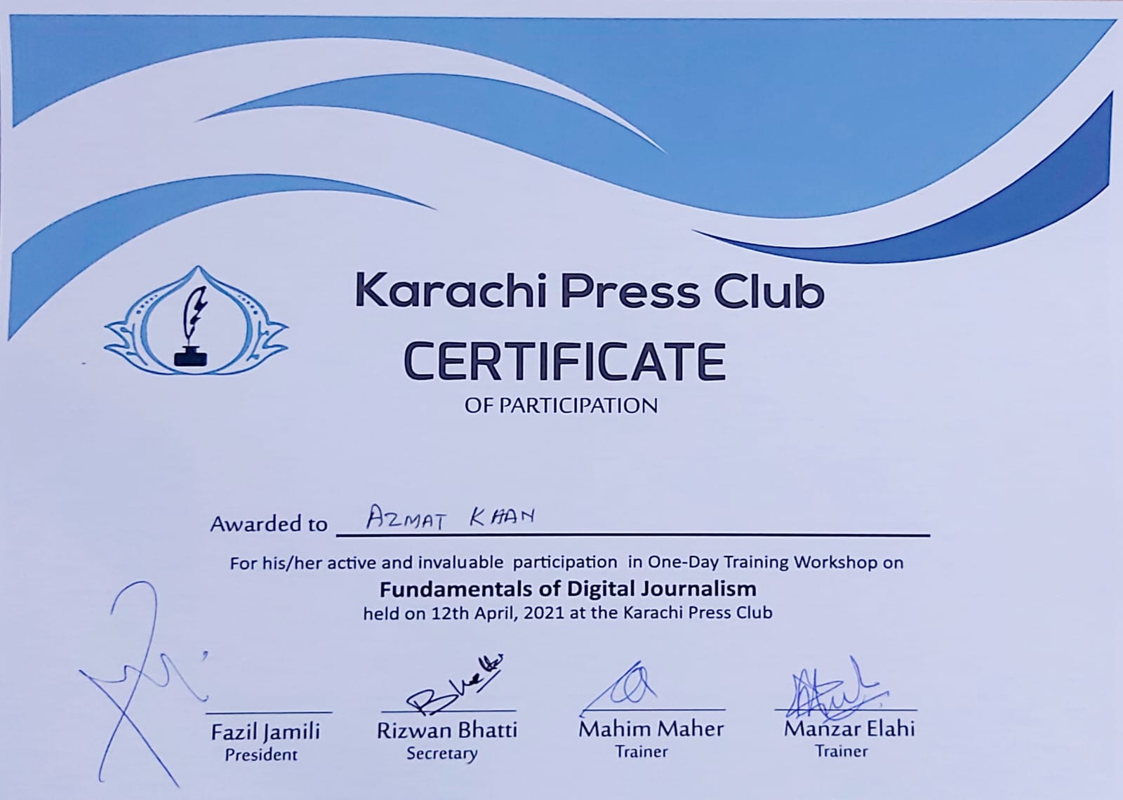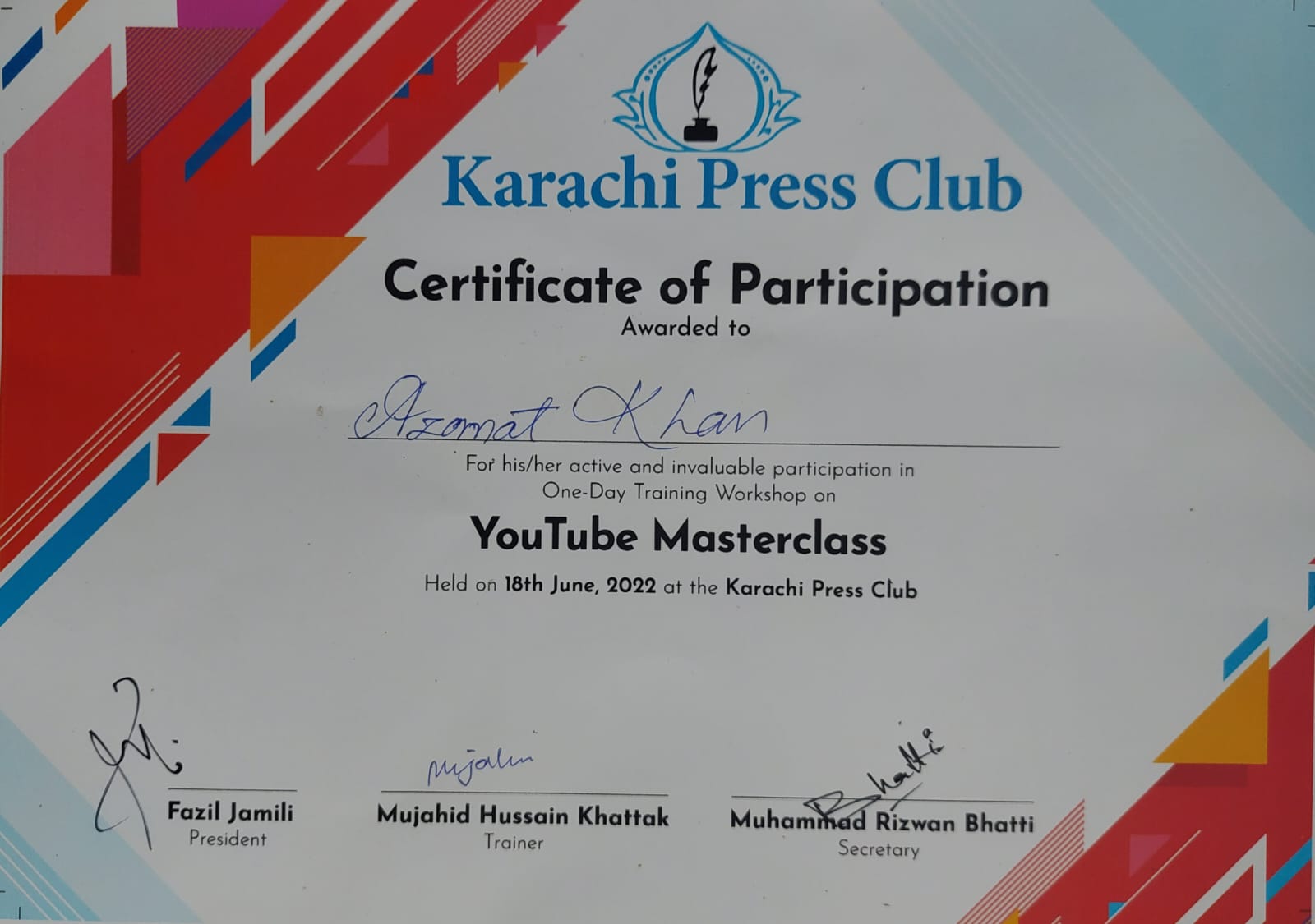 Currently, he is pursuing MPhil in Mass Communication from the University of Karachi.