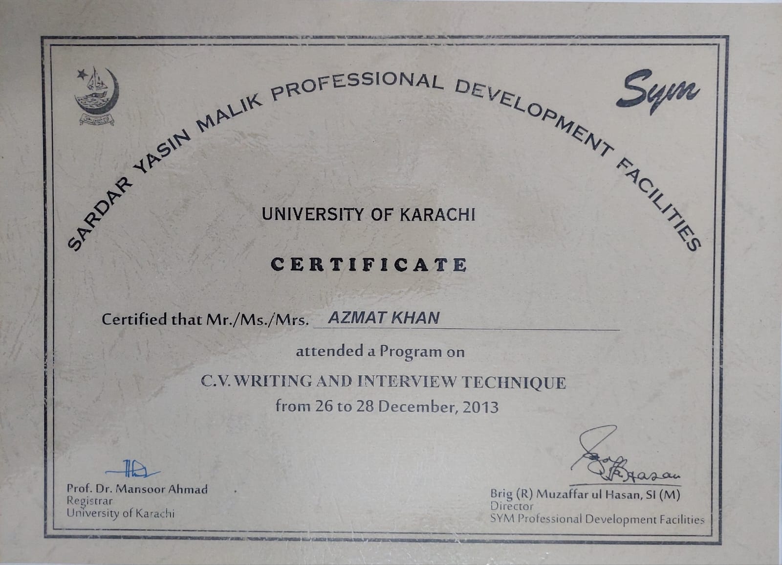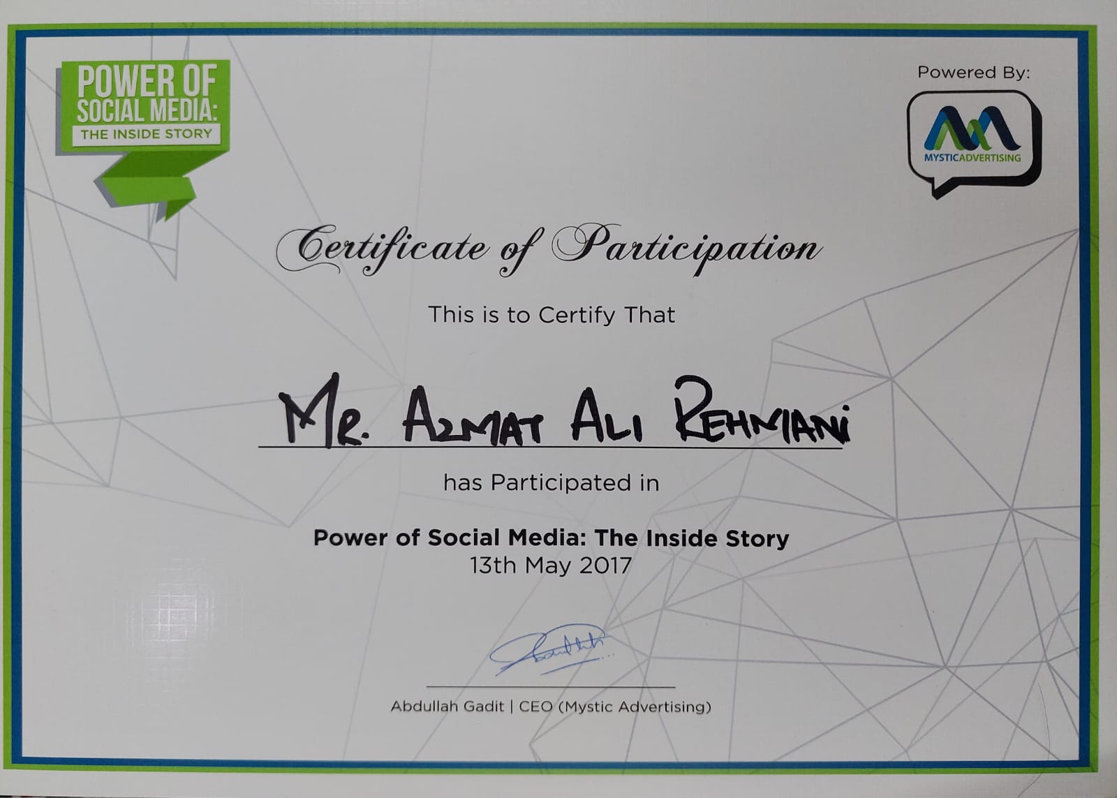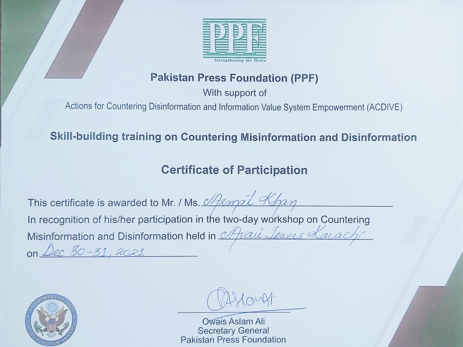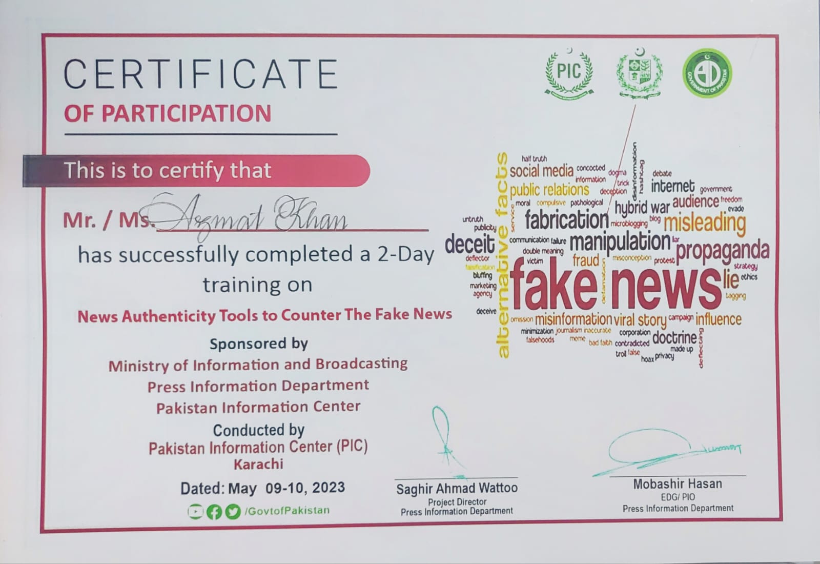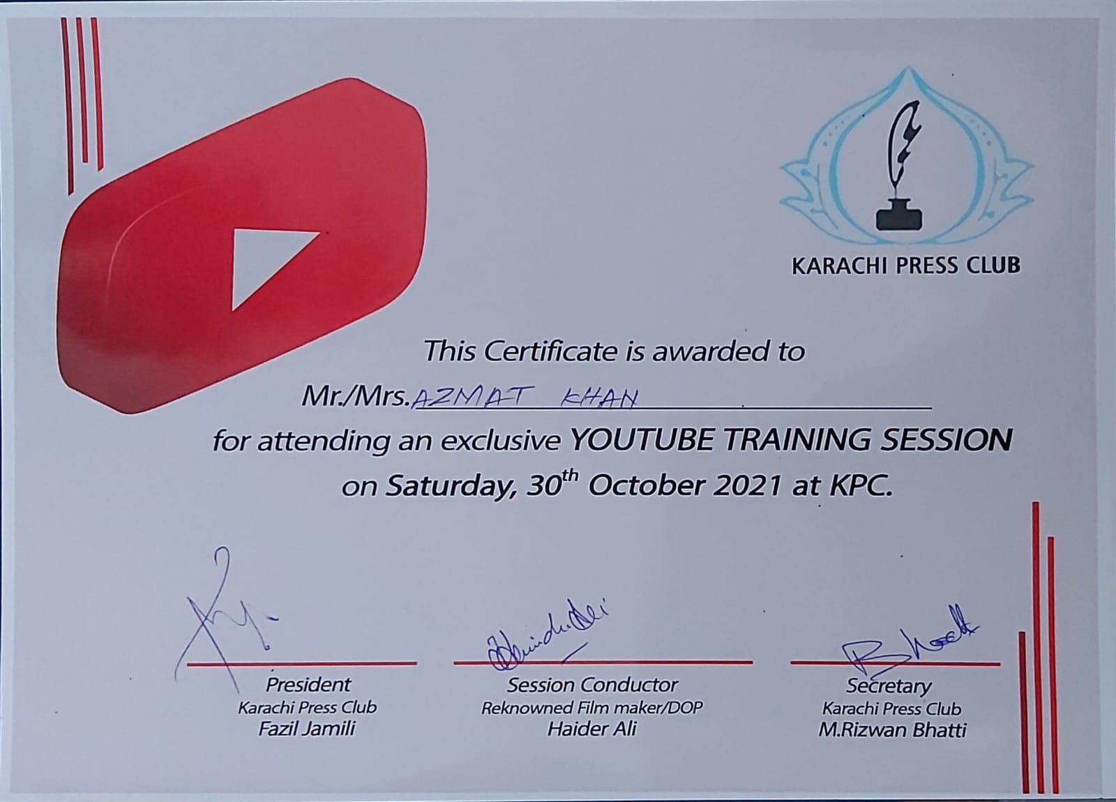 Currently, he is pursuing MPhil in Mass Communication from the University of Karachi.
