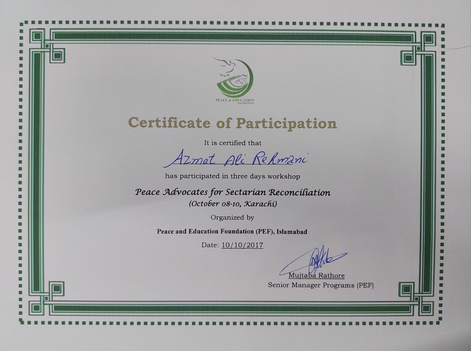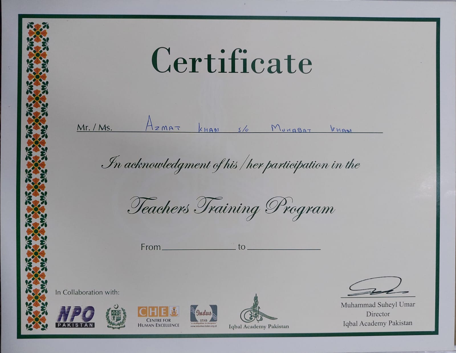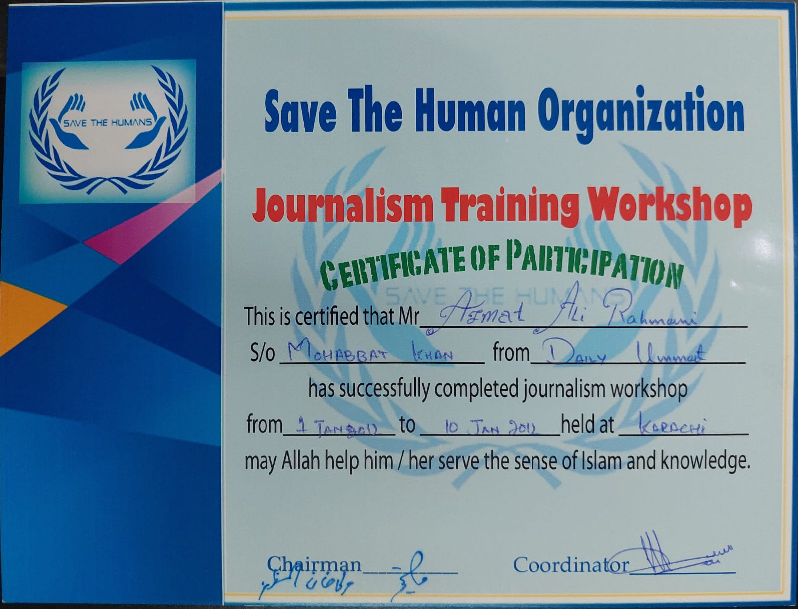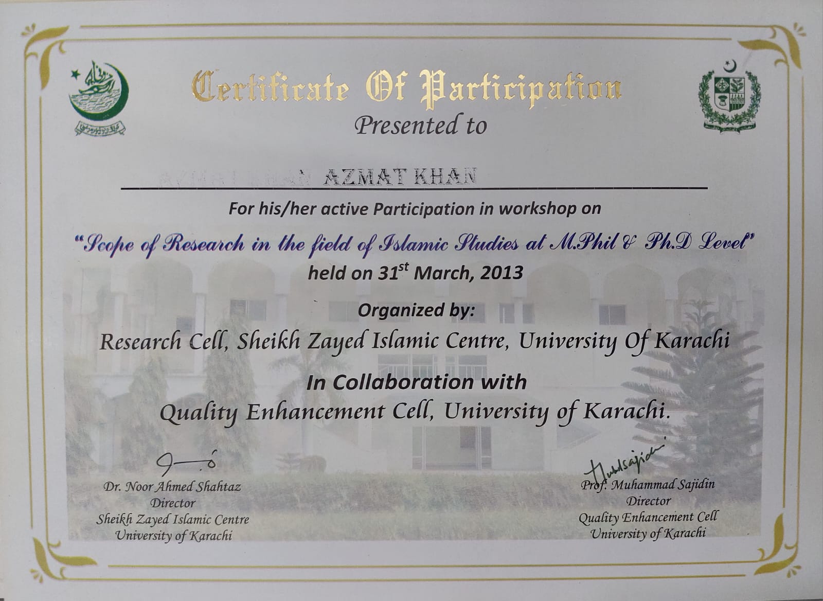In addition to his academic and religious education, he has obtained around 30 certifications. These include short courses, training certificates, certificates of participation in international seminars, and certificates from workshops organized by local institutions
