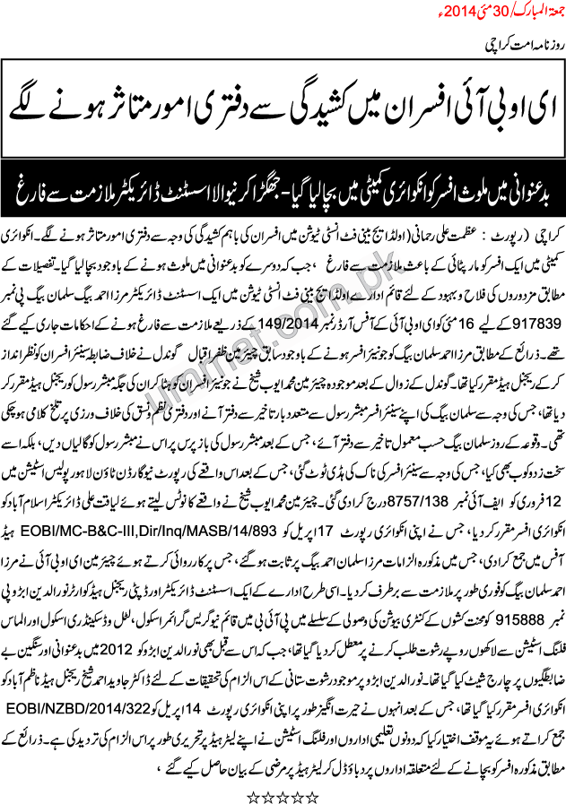 ای او بی آئی افسرا ن میں کشیدگی سے دفتری امور متاثر ہونے لگے October 24, 2016October 23, 2016 by admin