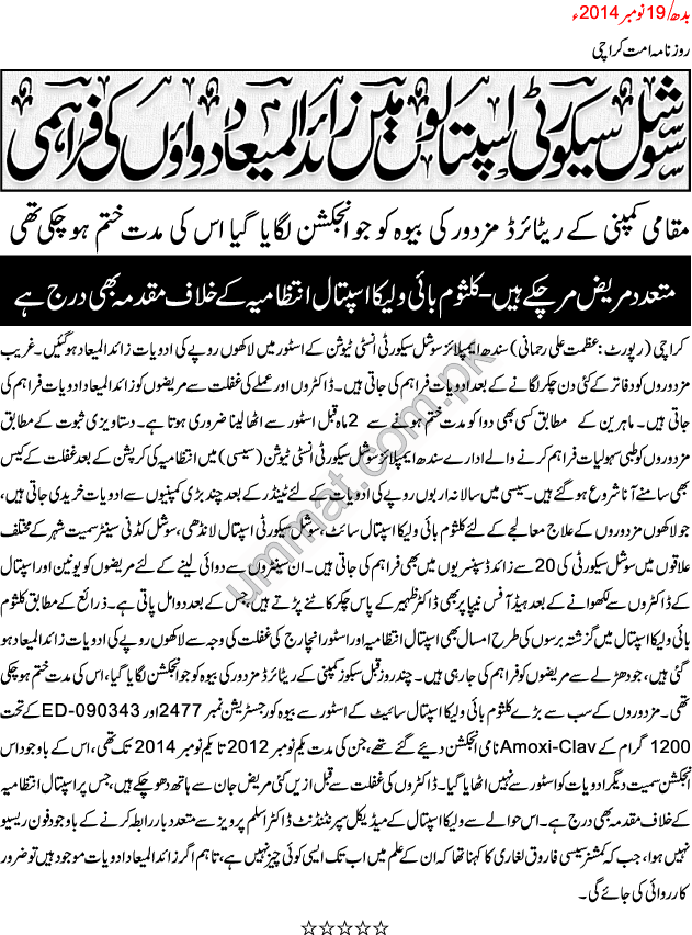 سوشل سیکورٹی اسپتالوں میں زائد المیعاد دواؤں کی فراہمی