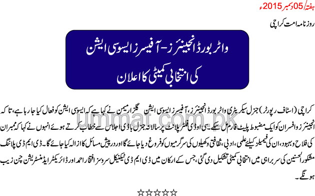 واٹر بورڈ انجنیئرز – آفیسرز ایسوسیشن کی انتخابی کمیٹی کا اعلان