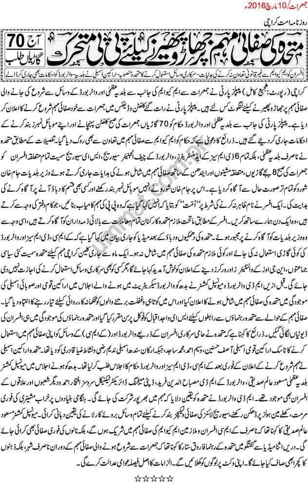متحدہ کی صفائی مہم پر جھاڑو پھیرنے کیلئے پی پی متحرک