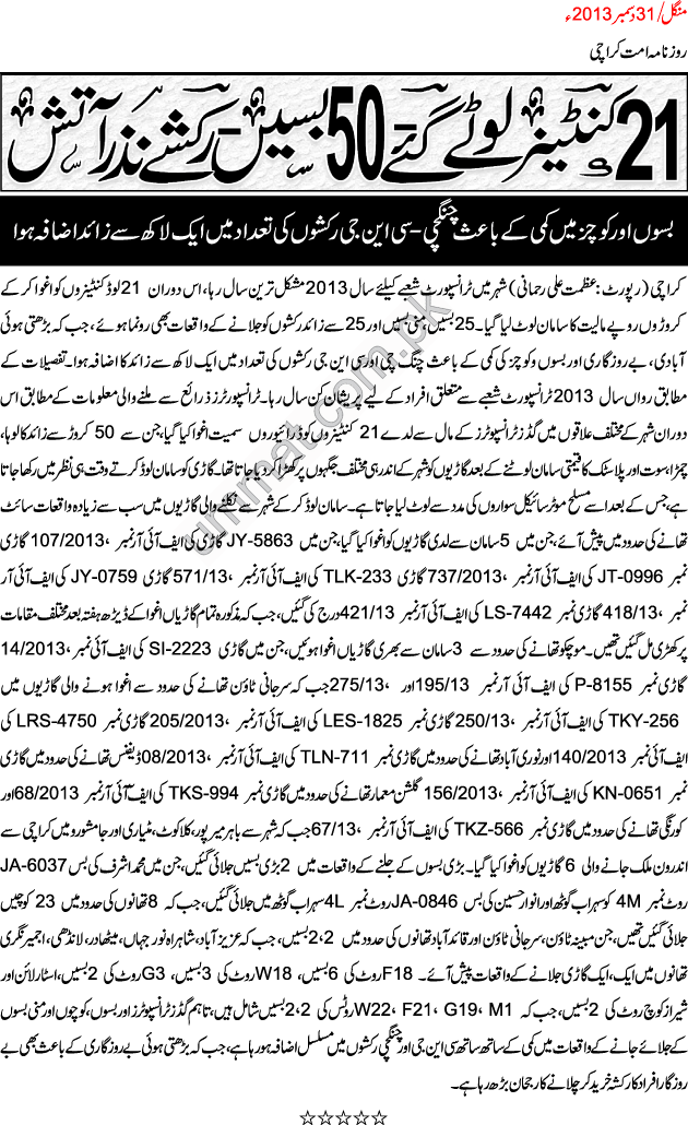 خوفزدہ ٹرانسپورٹر32 ہزار گاڑیاں سڑکوں پر نہیں لائے