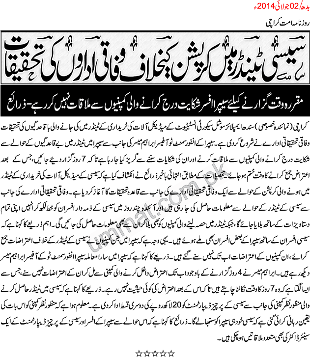 سیسی ٹینڈر میں کرپشن کیخلاف وفاقی اداروں کی تحقیقات