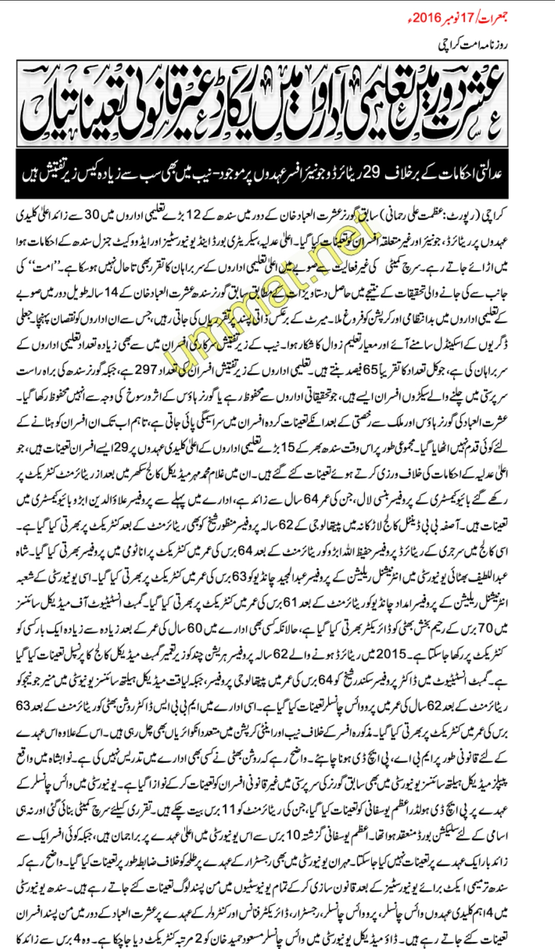 عشرت دور میں تعلیمی اداروں میں ریکارڈ غیر قانونی تعیناتیاں