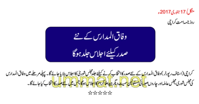 وفاق المدارس کے نئے صدر کے لئے اجلاس ہوگا