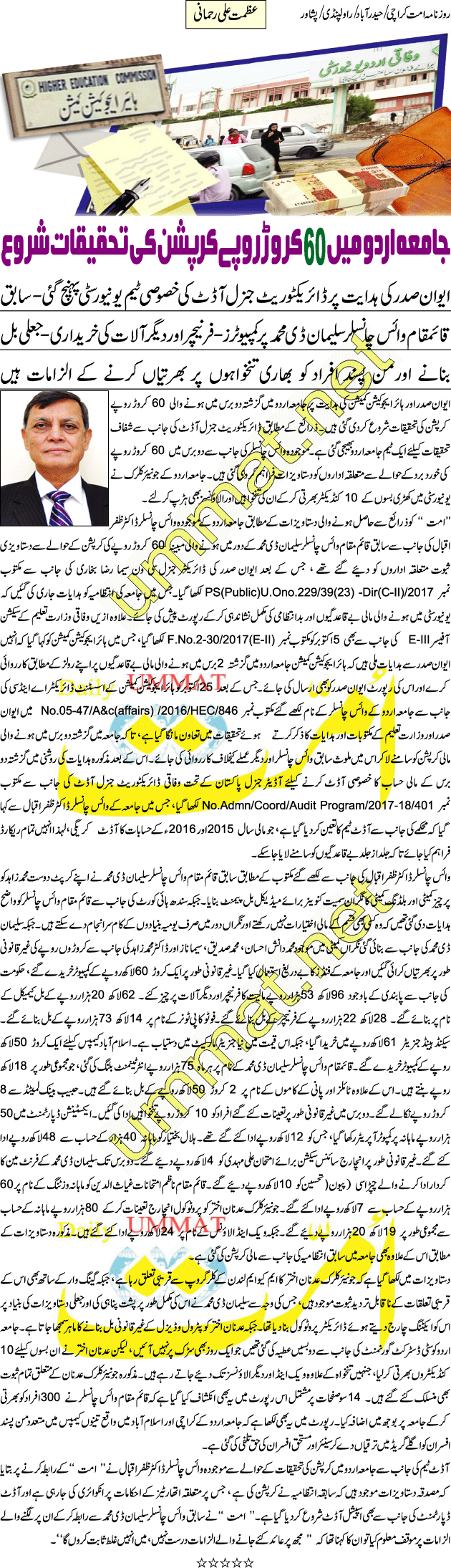جامعہ اردو میں 60 کروڑ روپے کرپشن کی تحقیقات شروع