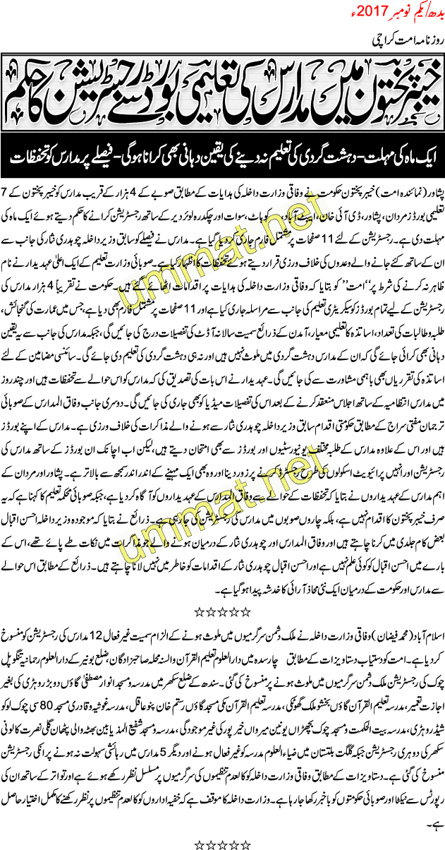 خیبر پختون میں مدارس کی تعلیمی بورڈ سے رجسٹریشن کا حکم