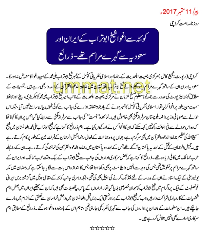 کوئٹہ سے اغوا شیخ ابو تراب کے ایران اور سعودیہ سے گہرے مراسم تھے ذرائع