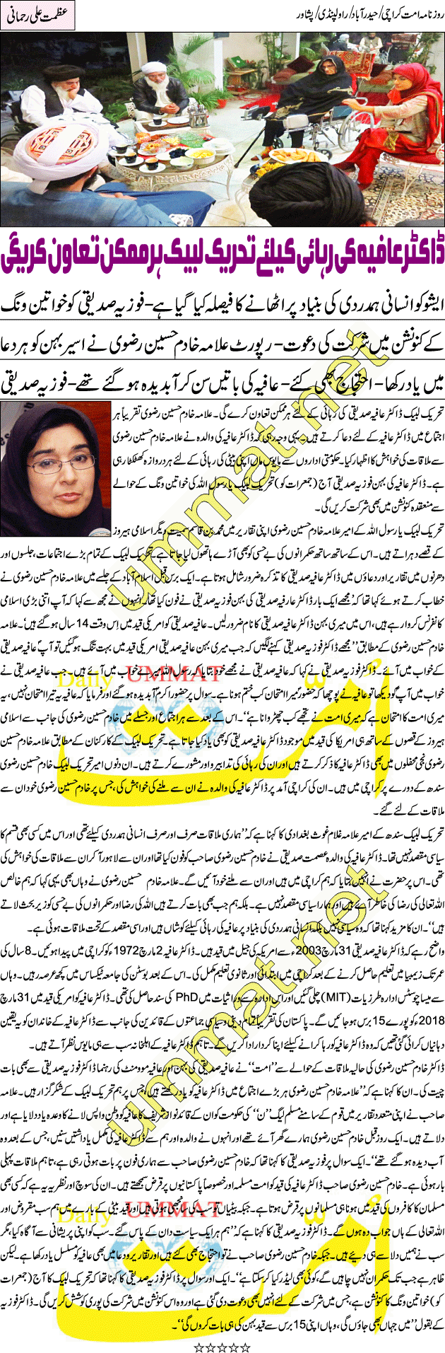 ڈاکٹر عافیہ کی رہائی کے لیے تحریک لبیک ہرممکن تعاون کرے گی