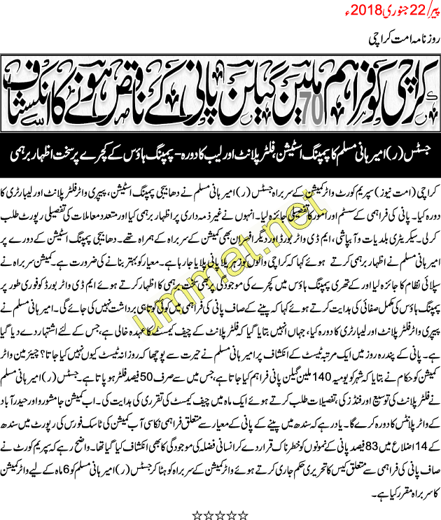 کراچی کوفراہم 70 ملین گیلن پانی کے ناقص ہونے کا انکشاف