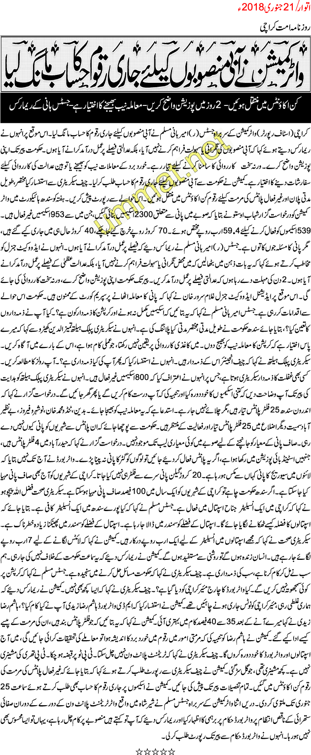 واٹر کمیشن نے آبی منصوبوں کے لیے جاری رقوم کا حساب مانگ لیا