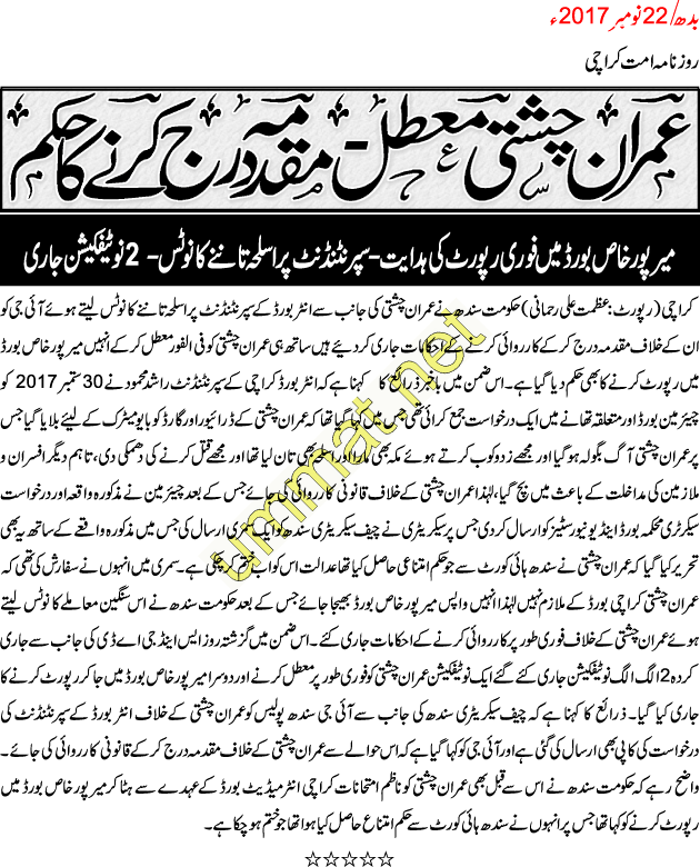 عمران چشتی معطل مقدمہ درج کرنے کا حکم