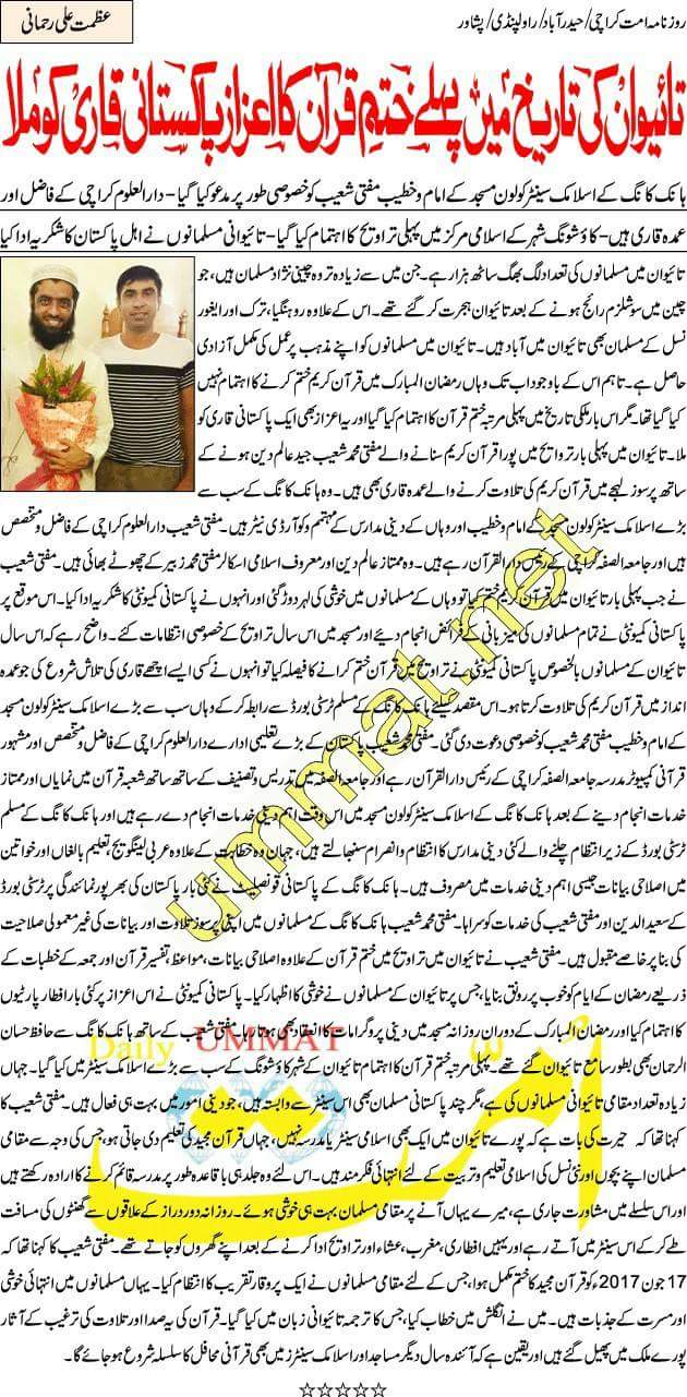 تائیوان کی تاریخ میں پہلے ختم قرآن کا اعزاز پاکستانی قاری کو ملا