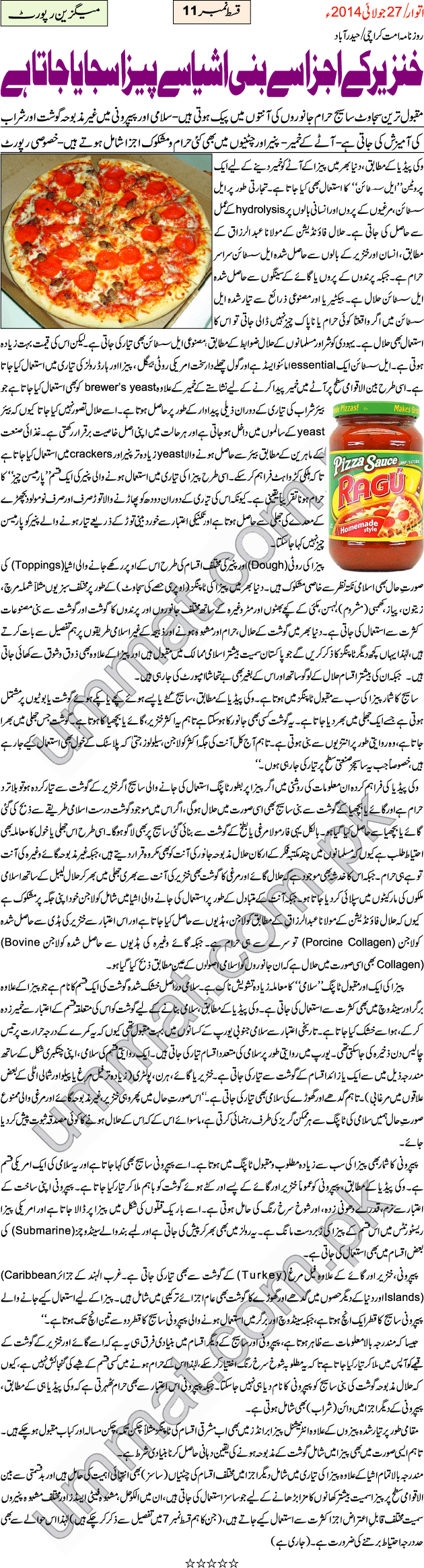 خنزیر کے اجزا سے بنی اشیا سے پیزاسجایاجاتا ہے