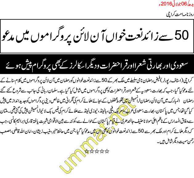 50 سے زائد نعت خواں آن لائن پروگراموں میں مدعو