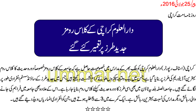 دار العلوم کراچی کے کلاس رومز جدید طرز پر تعمیر کئے گئے
