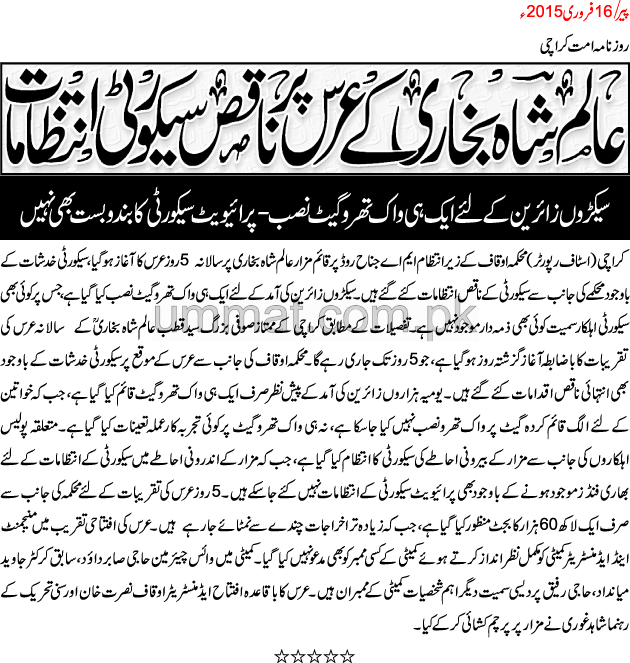 عالم شاہ بخاری کے عرس پر ناقص سیکورٹی انتظامات