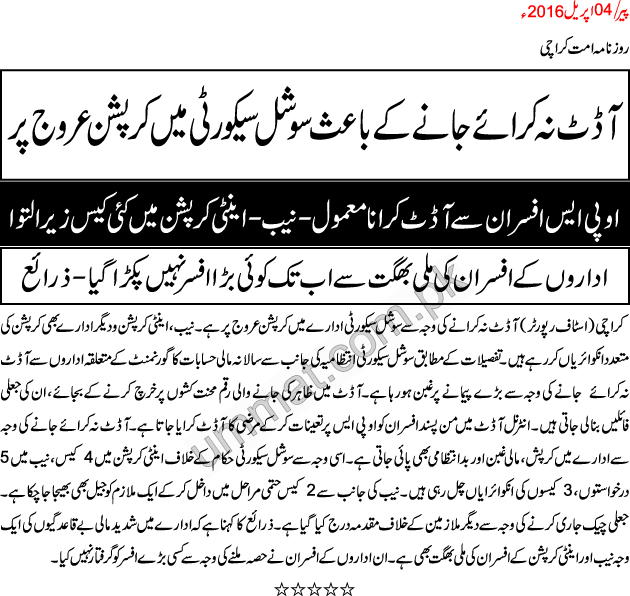 آڈٹ نہ کرائے جانے کے باعث سوشل سیکورٹی میں کرپشن عروج پر