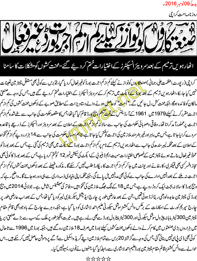 صنعتکاروں کو نواز نے کیلئے کم از کم اجرت بورڈ غیر فعال
