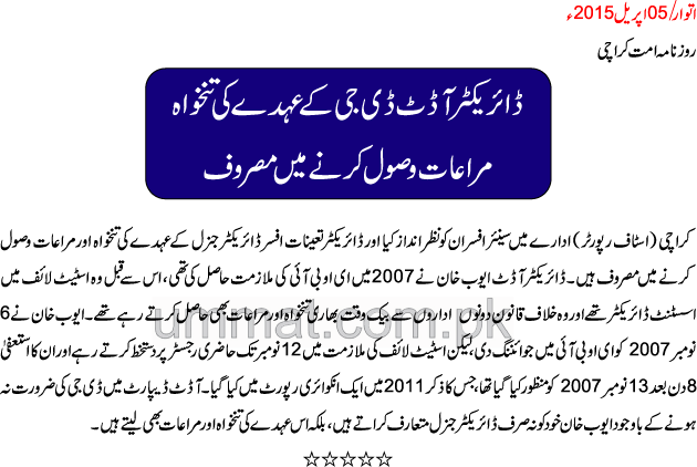 ڈائریکٹر آڈٹ ڈی جی کے عہدے کی تنخواہ مراعات وصول کرنے میں مصروف