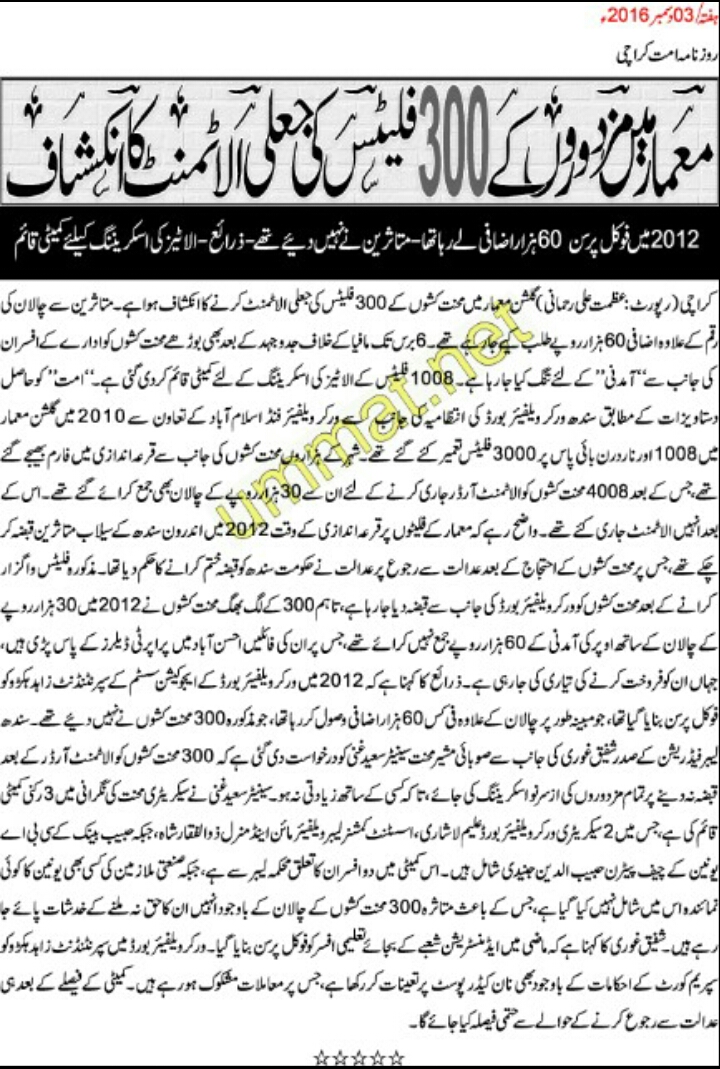 معمار میں مزدوروں کے 300 فلیٹس کی جعلی الاٹمنٹ کا انکشاف