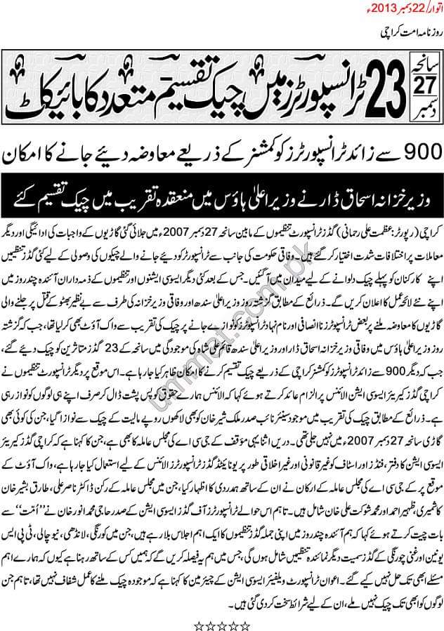 سانحہ 27 دسمبر۔ 23 ٹرانسپوٹرز میں چیک تقسیم، متعدد کا بائیکاٹ
