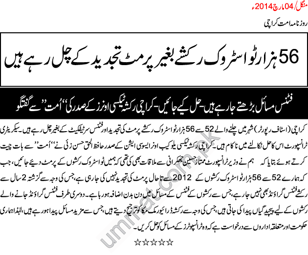 56 ہزہراز ٹو اسٹروک رکشے بغیر پرمٹ تجدید کے چل رہے ہیں