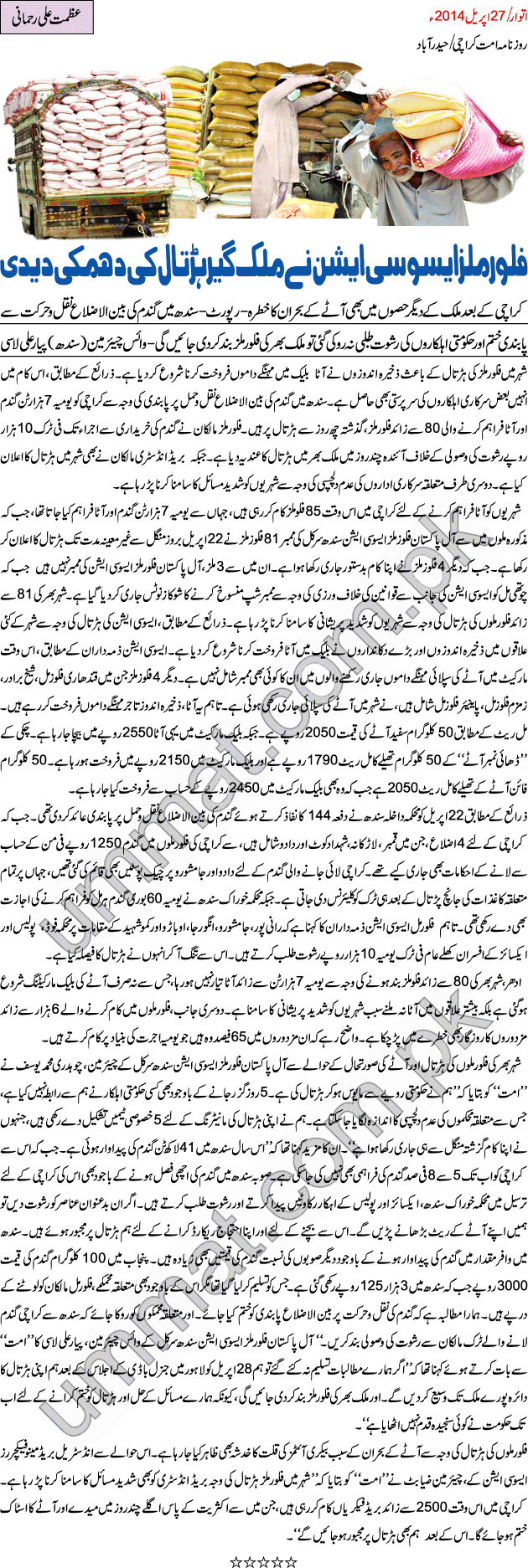 فلور ملز ایسوسی ایشن نے ملک گیر ہڑتال کی دھمکی دیدی